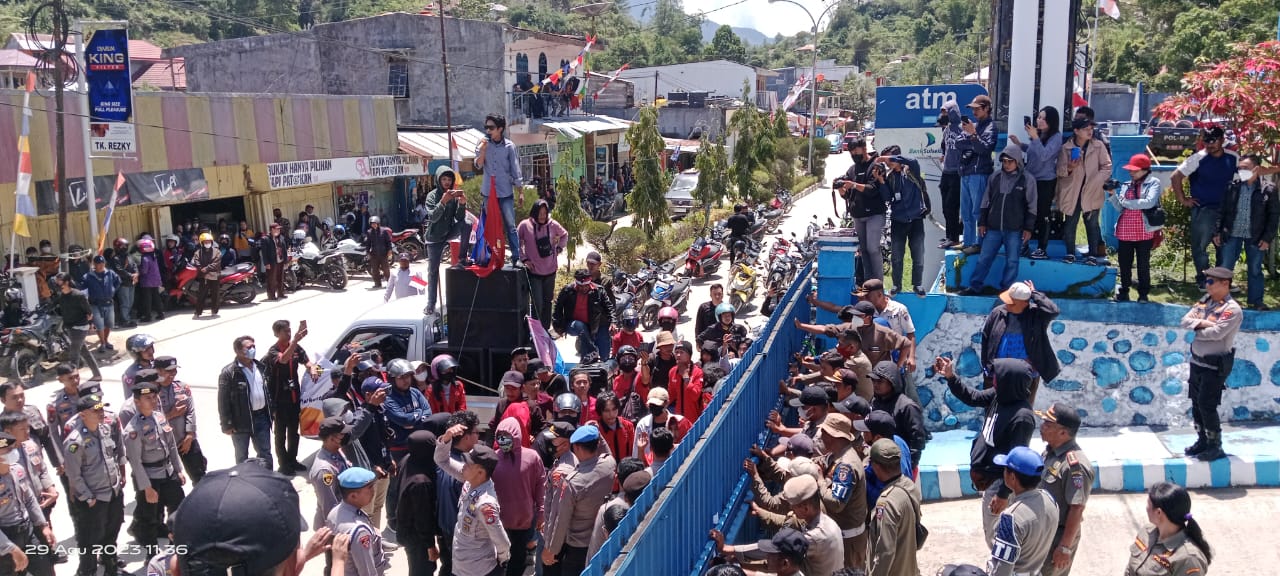 Mamasa, 8enam.com.-Aksi Unjuk Rasa (Unras) sejumlah mahasiswa dan guru yang tergabung dalam poros rakyat Mamasa dan Guru Mamasa di depan Kantor Bupati Mamasa, nyaris ricuh.