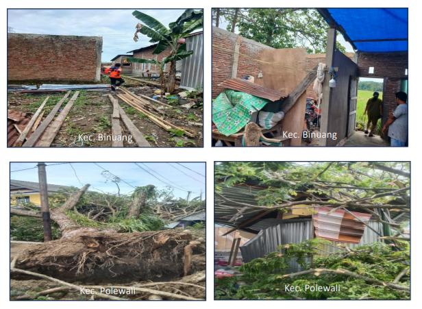 Berdasarkan laporan dari Pusdalops BPBD Kabupaten Polewali Mandar (Polman), peristiwa tersebut mengakibatkan sejumlah rumah warga mengalami kerusakan dan pohon tumbang di sekitar pantai.