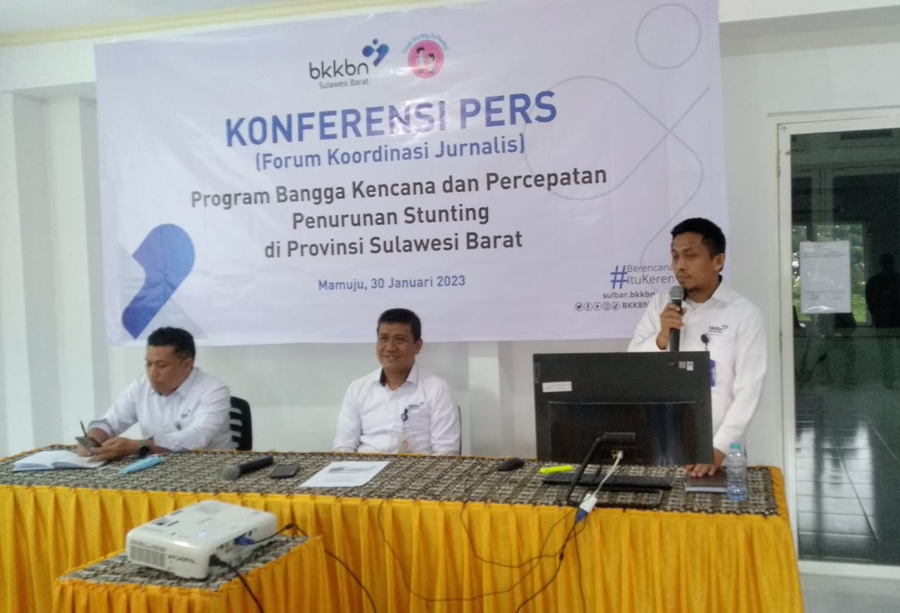 Mamuju, 8enam.com.-BKKBN Sulbar menggelar kompresi pers program bangga kencana dan percepatan penurunan stunting di Provinsi Sulawesi Barat, Senin (30/1/2023).