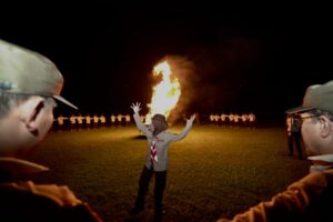 Mamuju, 8enam.com.-Suasana khidmat menyelimuti malam kedua kegiatan retreat Pemprov Sulbar yang digelar di Korem 142/Tatag, para peserta yang terdiri dari pejabat eselon II dan tenaga ahli Gubernur dan Wakil Gubernur Sulbar mengikuti sesi api unggun dan renungan malam. Sabtu, 19 Juli 2025.