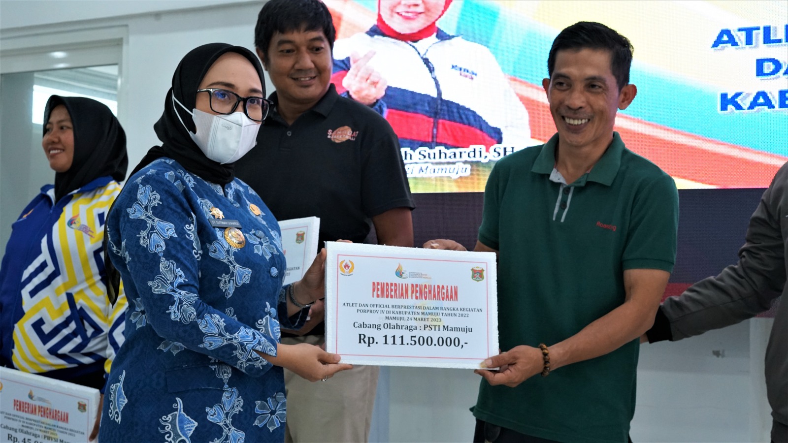 Teknis Penyerahan bonus atlet tersebut selanjutnya diserahkan kepada Koni Mamuju yang akan menyalurkan ke tiap Ketua Cabor dan selanjutnya mereka yang akan menyerahkan kepada masing-masing atlet. (**)