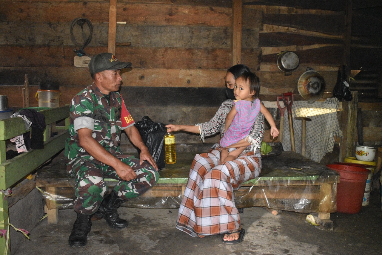 Selain itu, pihaknya juga memberikan bantuan sembako berupa beras, super mie, telur, minyak goreng, gula, kopi dan teh sebagai bentuk kepedulian Babinsa terhadap warga binaannya.
