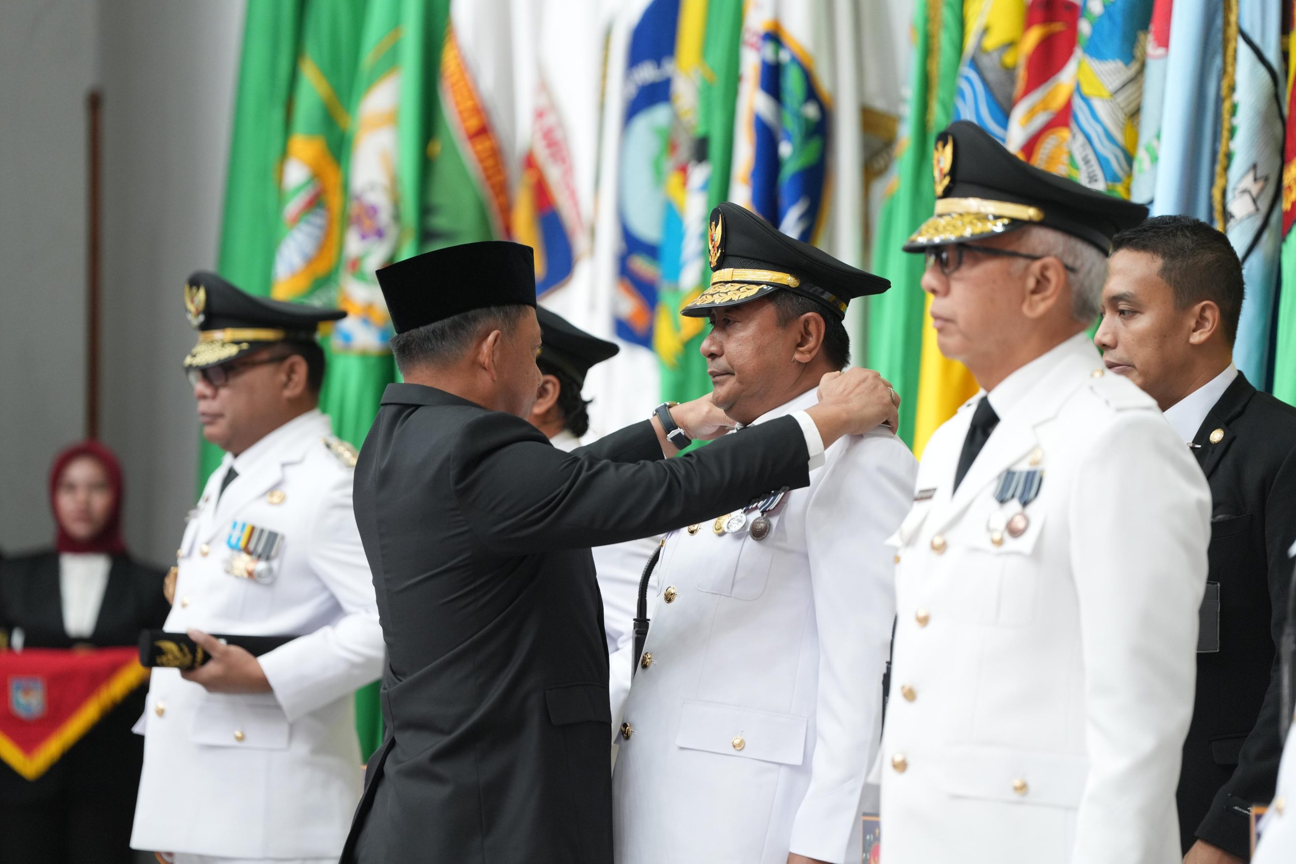 Pejabat yang dilantik, Drs Samsuddin Abd Kadir sebagai Pj.Gubernur Maluku Utara, Dr. Al Muktabar (PJ Gubernur Banten), Dr. Bahtiar Baharuddin (PJ Gubernur Sulbar), Dr Moh Rudi Salahuddin (PJ Gubernur Gorontalo) dan Prof. Zudan Arif Fakrulloh (PJ Gub. Sulsel)