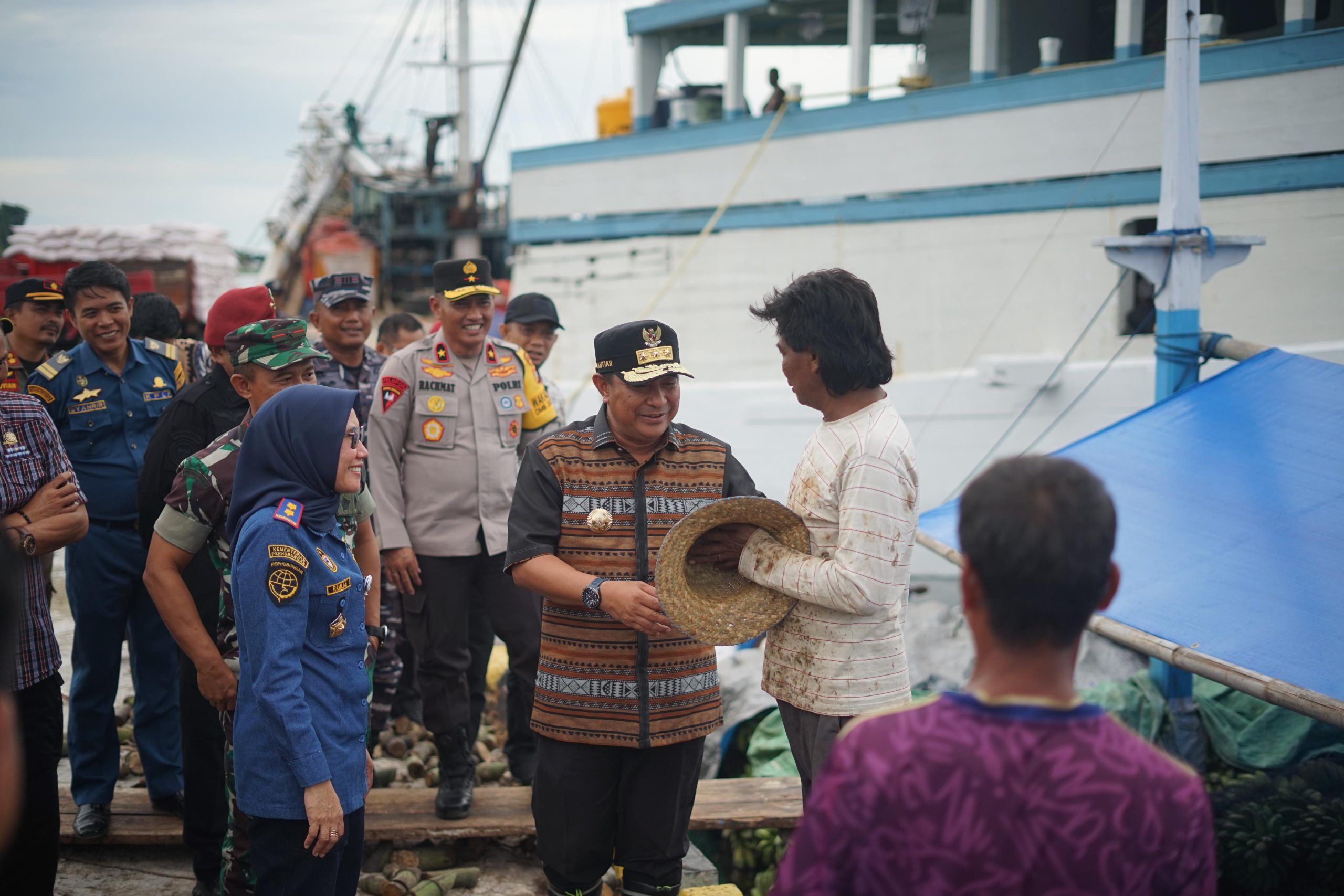 Terlihat PJ Gubernur Sulbar melakukan rapat bersama untuk mendapatkan informasi terkait fasilitas sarana dan prasarana di Pelabuhan Belang-Belang. Ia juga berdialog langsung dengan masyarakat yang melakukan bongkar muat barang di Pelabuhan.