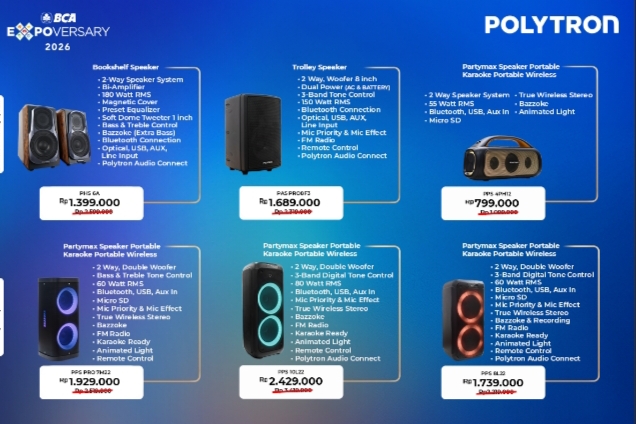 Kabar baik bagi Anda yang ingin melakukan upgrade audio. Di ajang BCA Expoversary 2026, Polytron menawarkan harga spesial untuk seri Partymax PPS PRO7M22.