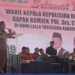 “Oleh karena itu, hanya satu yang menjadi kekuatan kita yaitu soliditas. Soliditas sebagai anak bangsa, soliditas sebagai satu suku, soliditas sebagai sebuah provinsi dan kabupaten yang tidak boleh tersentuh dari priksi-priksi yang di lakukan oleh kelompok individu yang akan mencabik-cabik bangsa Indonesia. Kapanpun kita harus solid,” pesan Komjen. Pol. Syafruddin.