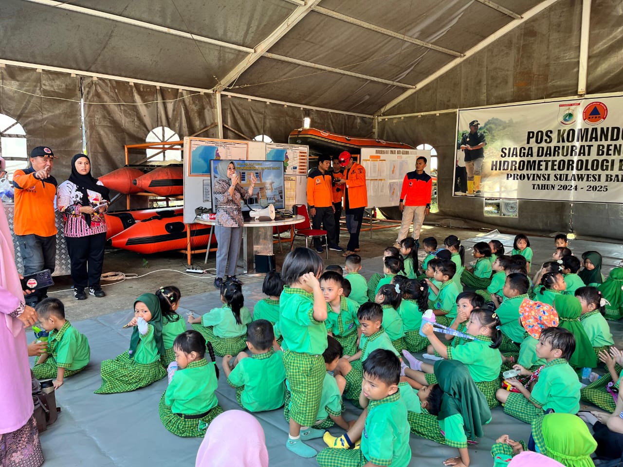 ​Dalam kegiatan yang berlangsung meriah ini, para murid diajak mengenal pengetahuan dasar mengenai bencana alam dengan cara yang sederhana dan menyenangkan. Selain sesi belajar, anak-anak juga diajak bermain sambil melihat langsung berbagai kendaraan operasional dan perahu yang dimiliki BPBD Sulbar untuk mendukung upaya penanggulangan bencana.