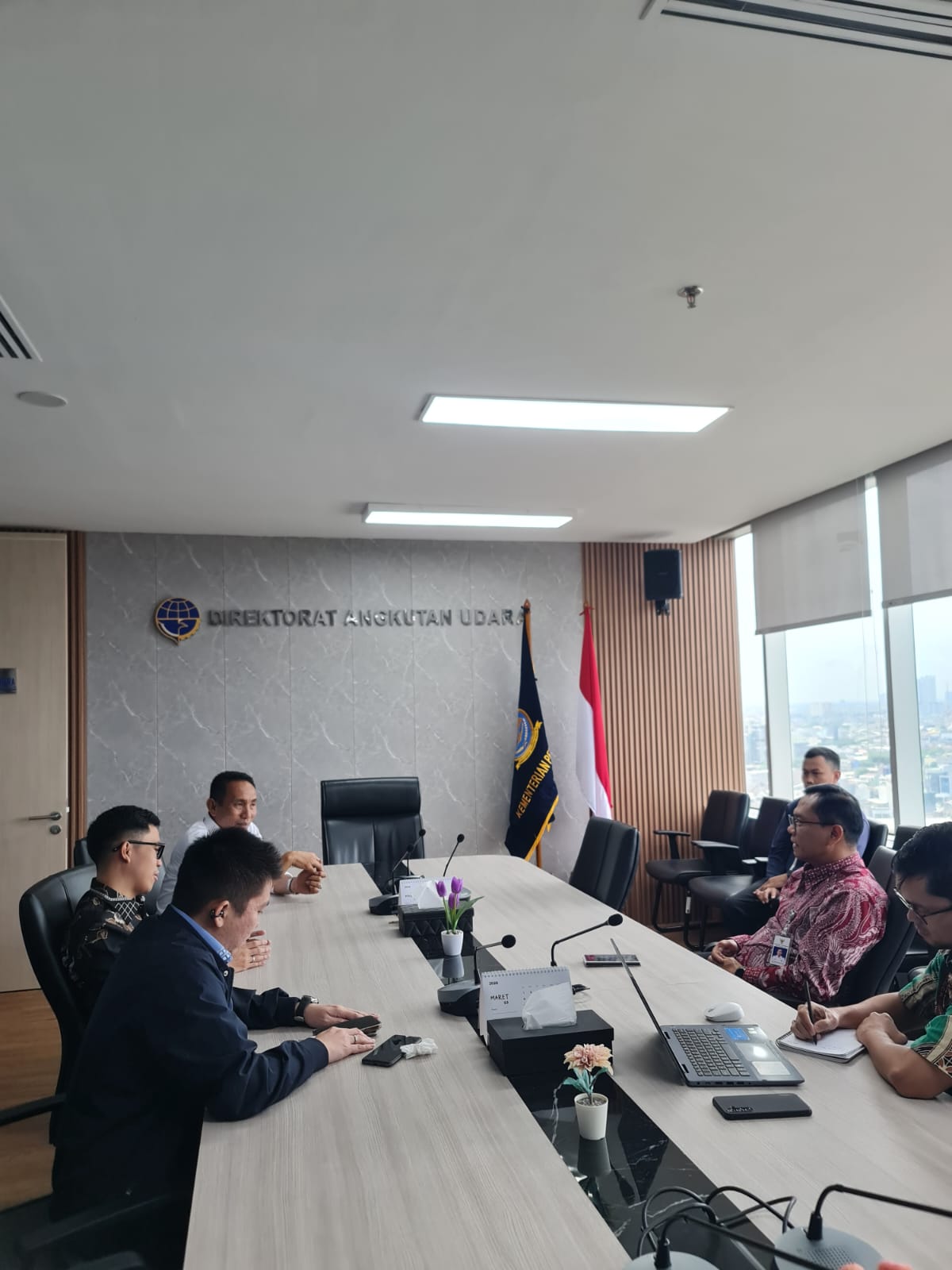 Kepala Dinas Perkimtanhub Sulbar, Maddareski Salatin, bersama Ketua HIPMI Sulbar yang juga Anggota DPR RI, Muh. Zulfikar Suhardi, diterima langsung oleh Direktur Angkutan Udara Kemenhub RI, Agustinus Budi Hartono.