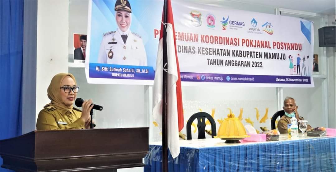 Mamuju, 8enam.com.-Bupati Mamuju Hj. Sitti Sutinah Suhardi, kembali mendorong upaya peningkatan layanan Posyandu, melalui intervensi bersama semua stakeholder terkait lewat forum pertemuan koordinasi Kelompok Kerja Operasional (Pokjanal) Posyandu dan penerapan Germas di semua tatanan tingkat Kabupaten Mamuju, Selasa (15/11/2022).