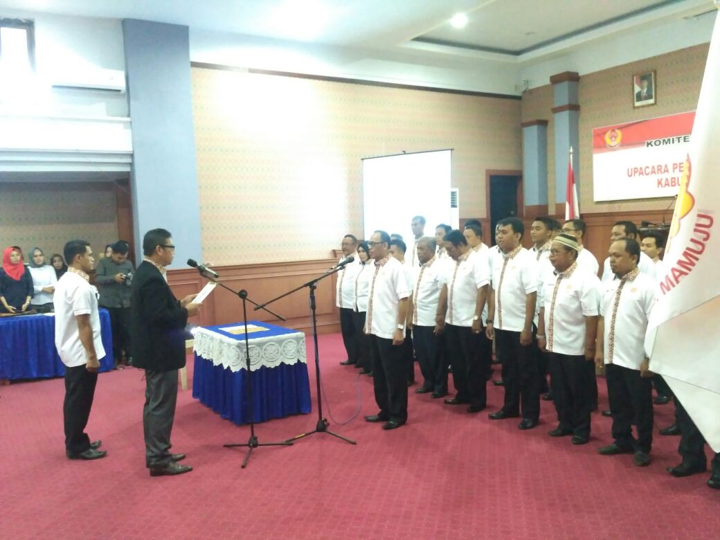 Mamuju, 8enam.com.-H. Samiran resmi dilantik menjadi ketua Komite Olahraga Nasional Indonesia (KONI) Kabupaten Mamuju, masa bakti 2017-2018 di Aula kantor Bupati Mamuju, Senin (2/10/17).