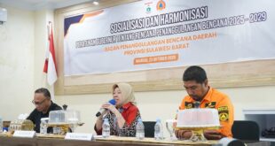 Mamuju, 8enam.com.-Badan Penanggulangan Bencana Daerah (BPBD) Provinsi Sulawesi Barat (Sulbar) menggelar kegiatan Sosialisasi dan Harmonisasi Peraturan Gubernur (Pergub) tentang Rencana Penanggulangan Bencana (RPB) Provinsi Sulawesi Barat Tahun 2025–2029 di Hotel Grand Putra Mamuju, Kamis 23 Oktober 2025. Pergub RPB : Acuan Teknis Lintas Sektor Kepala Bidang Kedaruratan dan Logistik BPBD …