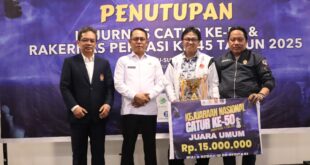 Mamuju, 8enam.com.-Kejuaraan Nasional (Kejurnas) Catur ke-50 dan Rapat Kerja Nasional (Rakernas) Percasi ke-45 Tahun 2025 di Mamuju resmi ditutup oleh Sekretaris Provinsi (Sekprov) Sulbar, Junda Maulana, di Ballroom Hotel Maleo Town Square (Matos) pada Rabu, 12 November 2025. Dalam sambutannya, Junda Maulana menyampaikan rasa bangga dan apresiasi kepada pengurus Percasi …