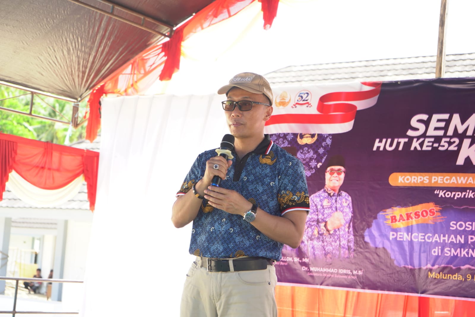 Kegiatan tersebut merupakan bagian bulan bakti pengabdian korpri. Pj Gubernur Sulbar Prof. Zudan Arif Fakrulloh yang juga Ketua Umum DPN Korpri hadir memberikan sambutan sekaligus mengedukasi para siswa.