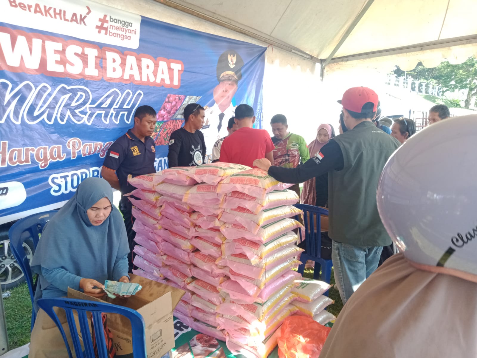 Selama pelaksanaan pasar murah sebanyak 3,5 ton beras dijual habis ke masyarakat, begitupun bahan pokok lainnya.