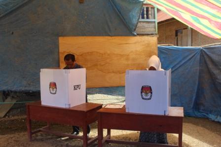 Di Dampingi Istri, Bupati Mateng H. Aras Tammauni Salurkan Hak Pilihnya Di TPS 5 Tobadak