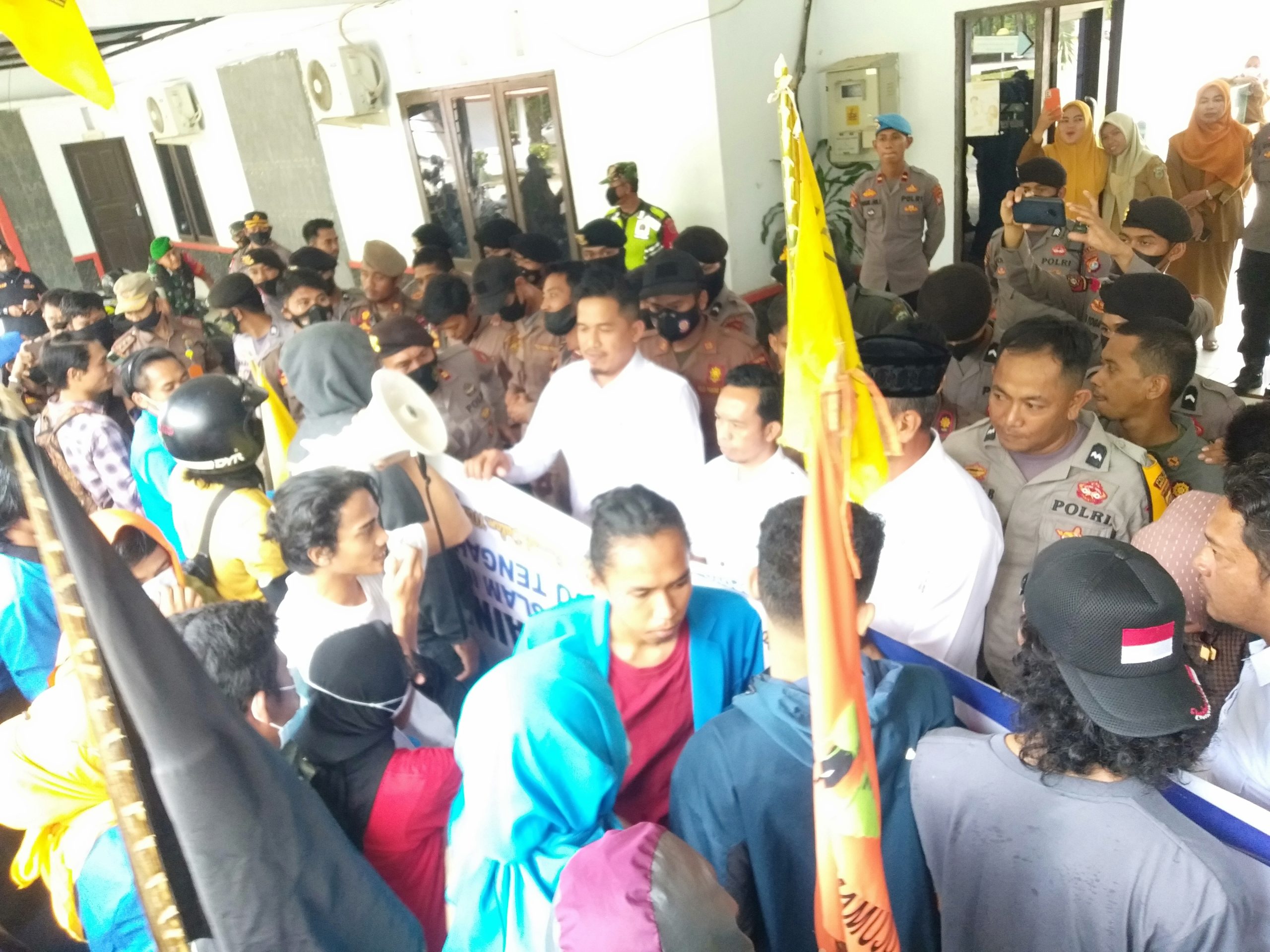 Massa aksi yang tidak sabar menunggu surat pernyataan tersebut mencoba untuk menerobos barigade Satpol PP dan polisi dari Polres Mateng, aksi saling dorong pun tak terhindarkan.