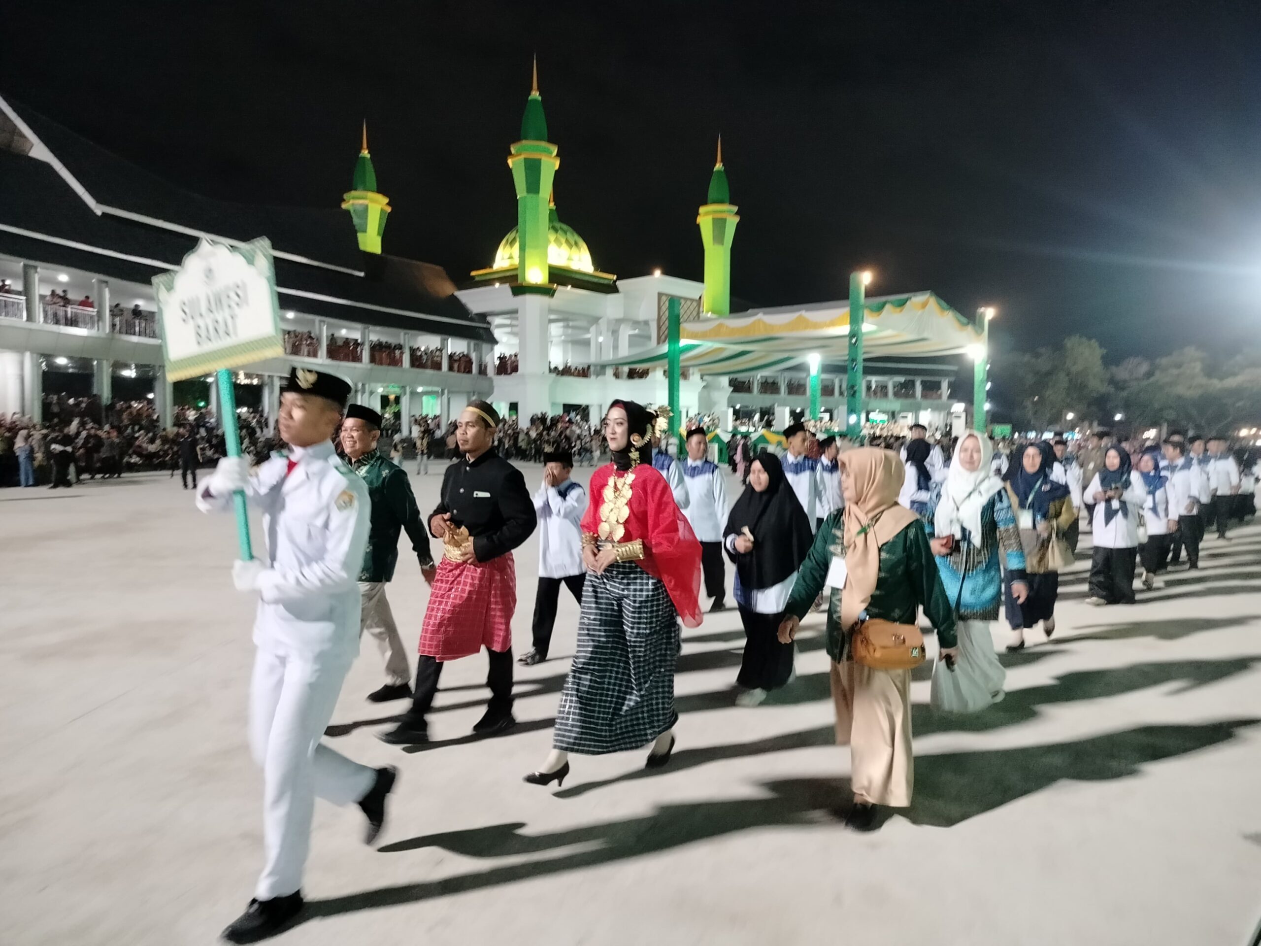 Ribuan peserta dari seluruh penjuru Indonesia memadati arena, termasuk rombongan Kafilah Sulbar yang turut serta dalam parade defile. Mereka tampil sejajar dengan provinsi lain, membawa atribut khas daerah dalam ajang bergengsi dua tahunan ini, yang didukung penuh oleh Gubernur Suhardi Duka dan Wagub Salim S. Mengga.
