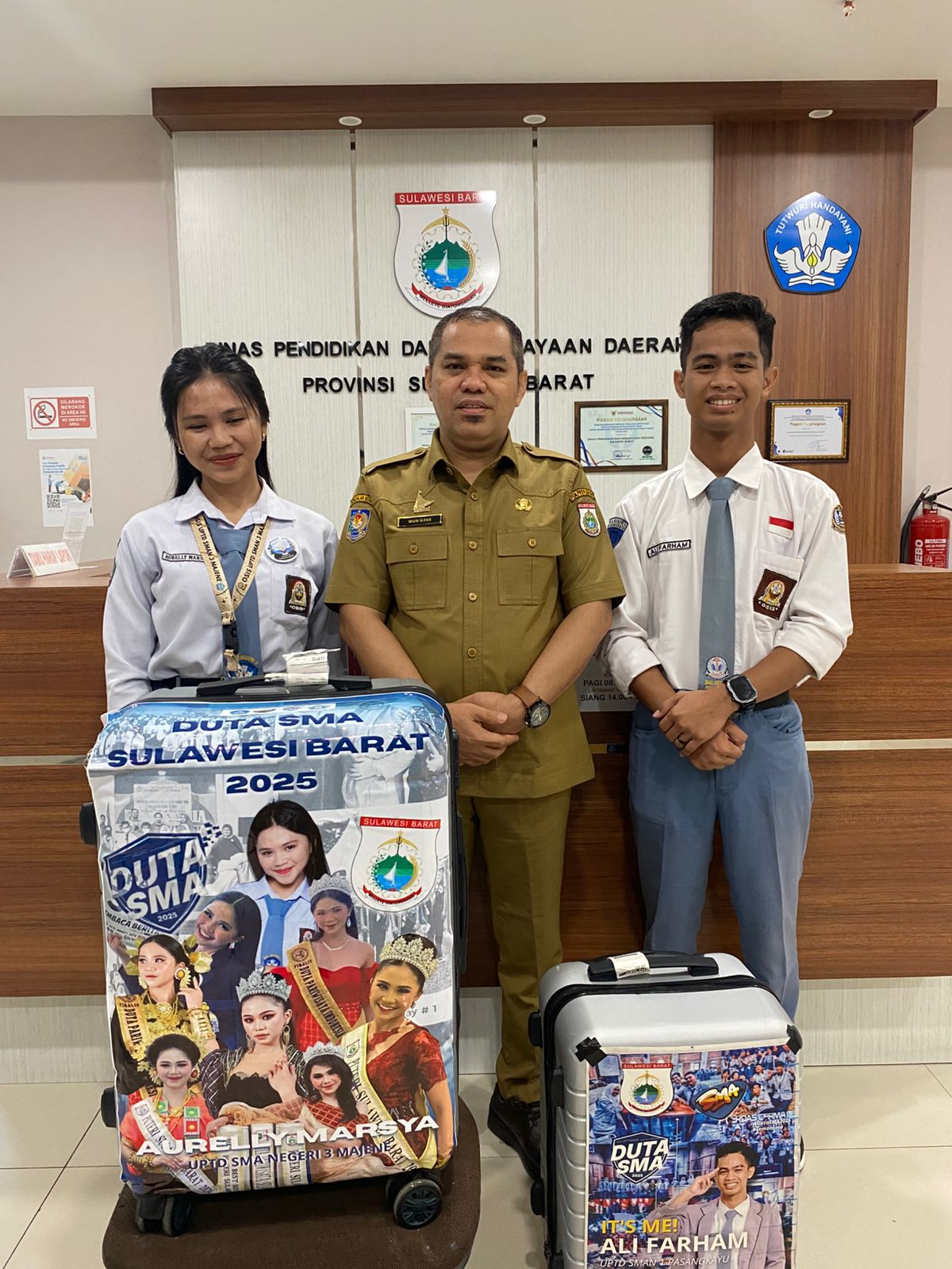 Mamuju, 8enam.com.-Dinas Pendidikan dan Kebudayaan Provinsi Sulawesi Barat memberikan dukungan penuh dan secara resmi, melepas dua siswa sebagai Duta SMA untuk mengikuti ajang lomba tingkat nasional yang akan berlangsung di Bogor, Jawa Barat, pada 5–9 Agustus 2025.