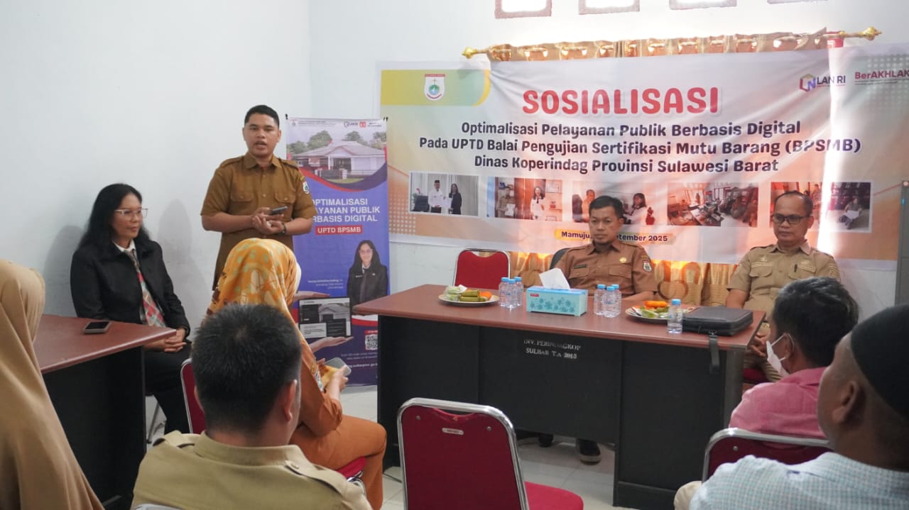 Mamuju, 8enam.com.-UPTD Balai Pengujian Sertifikasi Mutu Barang (BPSMB) Dinas Koperindag Sulawesi Barat (Sulbar) secara resmi menyosialisasikan inovasi layanan digitalnya pada Selasa, 9 September 2025.