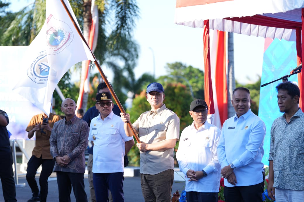 Mamuju, 8enam.com.-Di halaman depan kantor Gubernur Sulbar, Suhardi Duka (SDK), secara simbolis melepas ekspor biji kakao fermentasi dari PT Untuk Indonesia Hijau ke Yokohama, Jepang, Jumat, 18 Juli 2025.