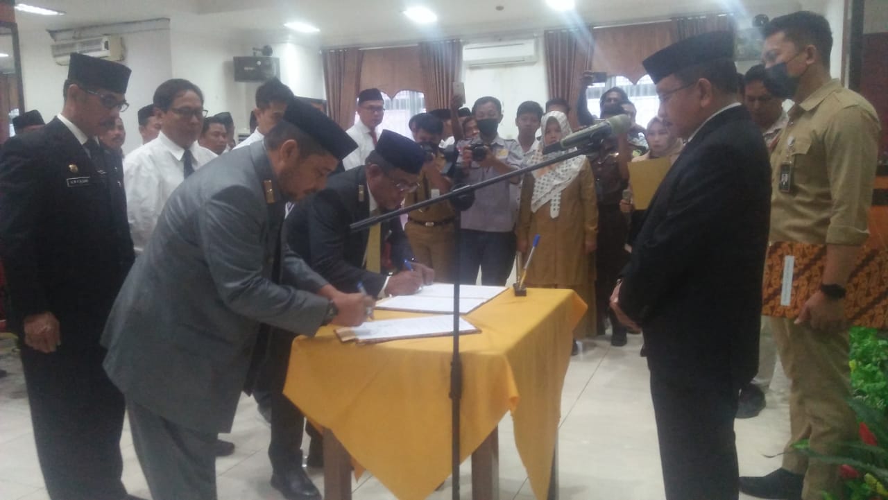 Pengambilan sumpah terhadap 92 Pejabat yang terdiri dari Eselon II Sebanyak 9 Orang, Eselon III 45 Orang dab Eselon IV 38 orang dilaksanakan di ruang pola Kantor Bupati Pasangkayu, Selasa (10/1/2023).