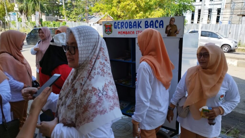 Salah satunya dari pengurus Dharma Wanita Persatuan (DWP) Kabupaten Mamuju. Mereka menyampaikan dukungan itu ketika meninjau dua Gerobak Baca yang dipajang Dispusip Mamuju di Lapangan Ahmad Kirang Mamuju, Jumat (13/10/2023).