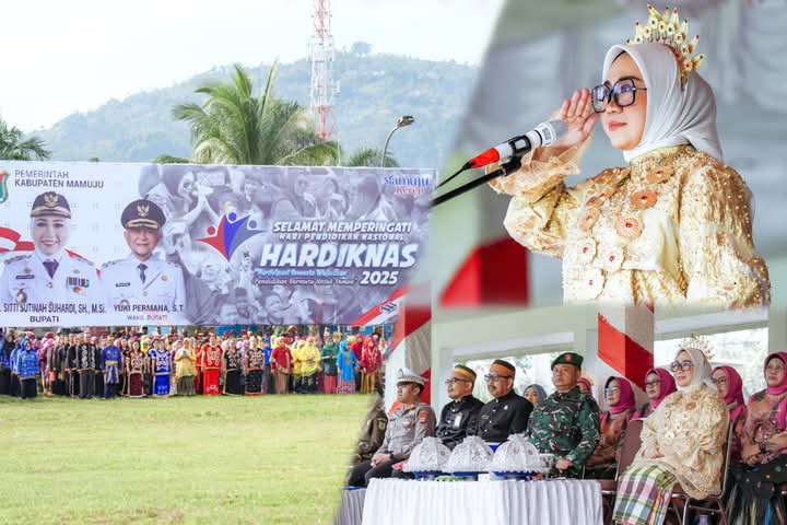 Mamuju, 8enam.com.-Memimpin Upacara Peringatan Hari Pendidikan Nasional Tahun 2025 tingkat Kabupaten Mamuju, Bupati Dr. Hj. Sitti Sutinah Suhardi menekankan pentingnya meningkatkan kapasitas tenaga pengajar dalam mengimbangi transformasi kemajuan pendidikan yang semakin pesat.