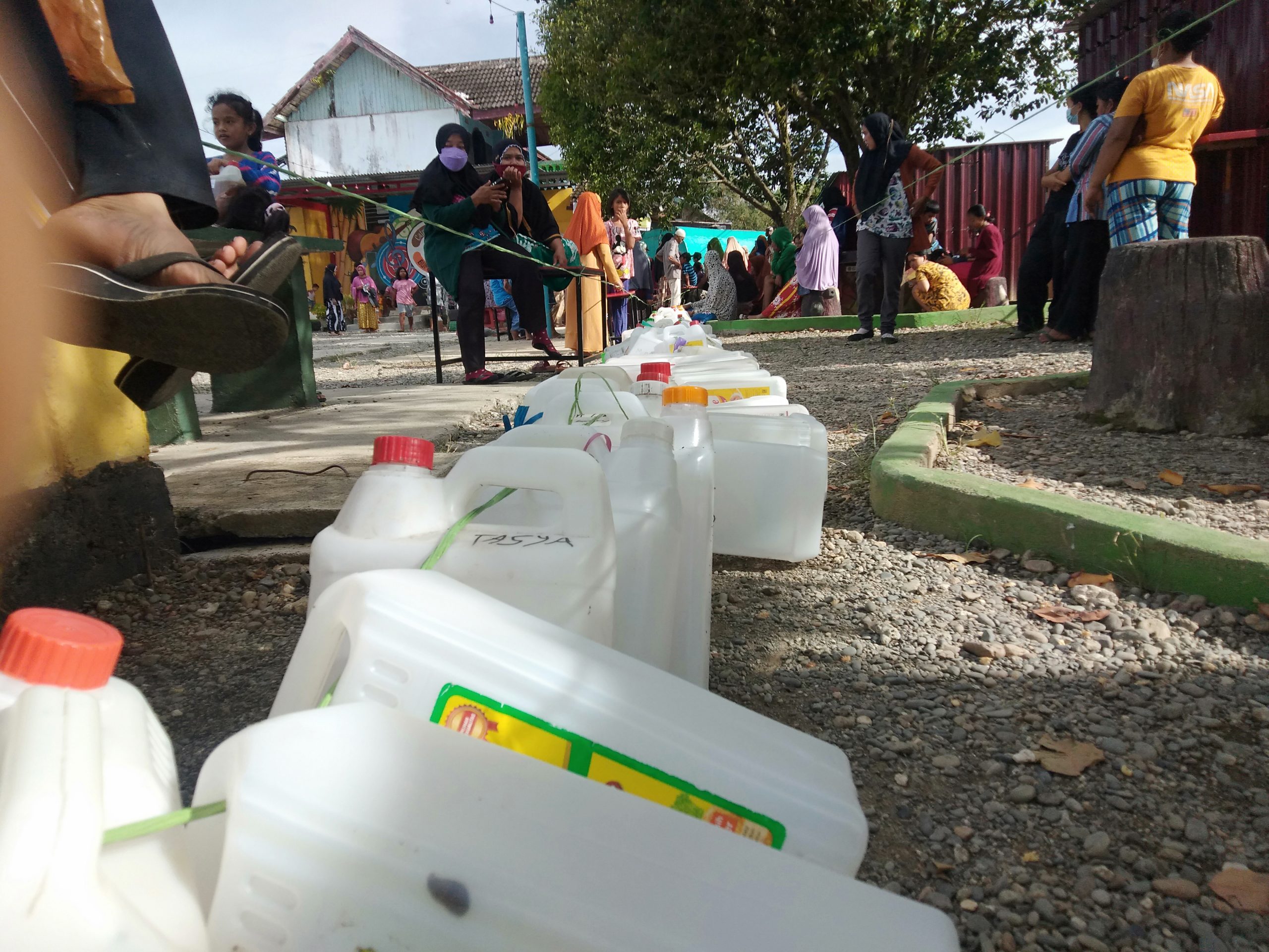 Nampak juga antrian ratusan ceregen ukuran 5 liter bahkan ada juga yang ukuran 10 liter dan rata-rata masyarakat yang datang membawa cergen.