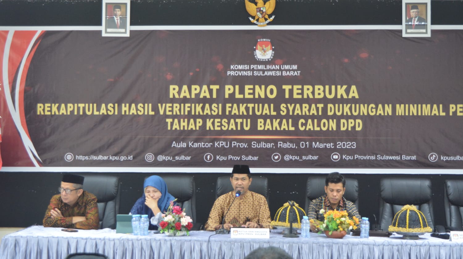 Mamuju,8enam.com.-Komisi Pemilihan Umum (KPU) Provinsi Sulawesi Barat menggelar rapat Pleno Terbuka Rekapitulasi Hasil Verifikasi Faktual (Verfak) syarat Dukung Minimal Pemilihan Tahap Kesatu Bakal Calon DPD Pemilu Tahun 2024.