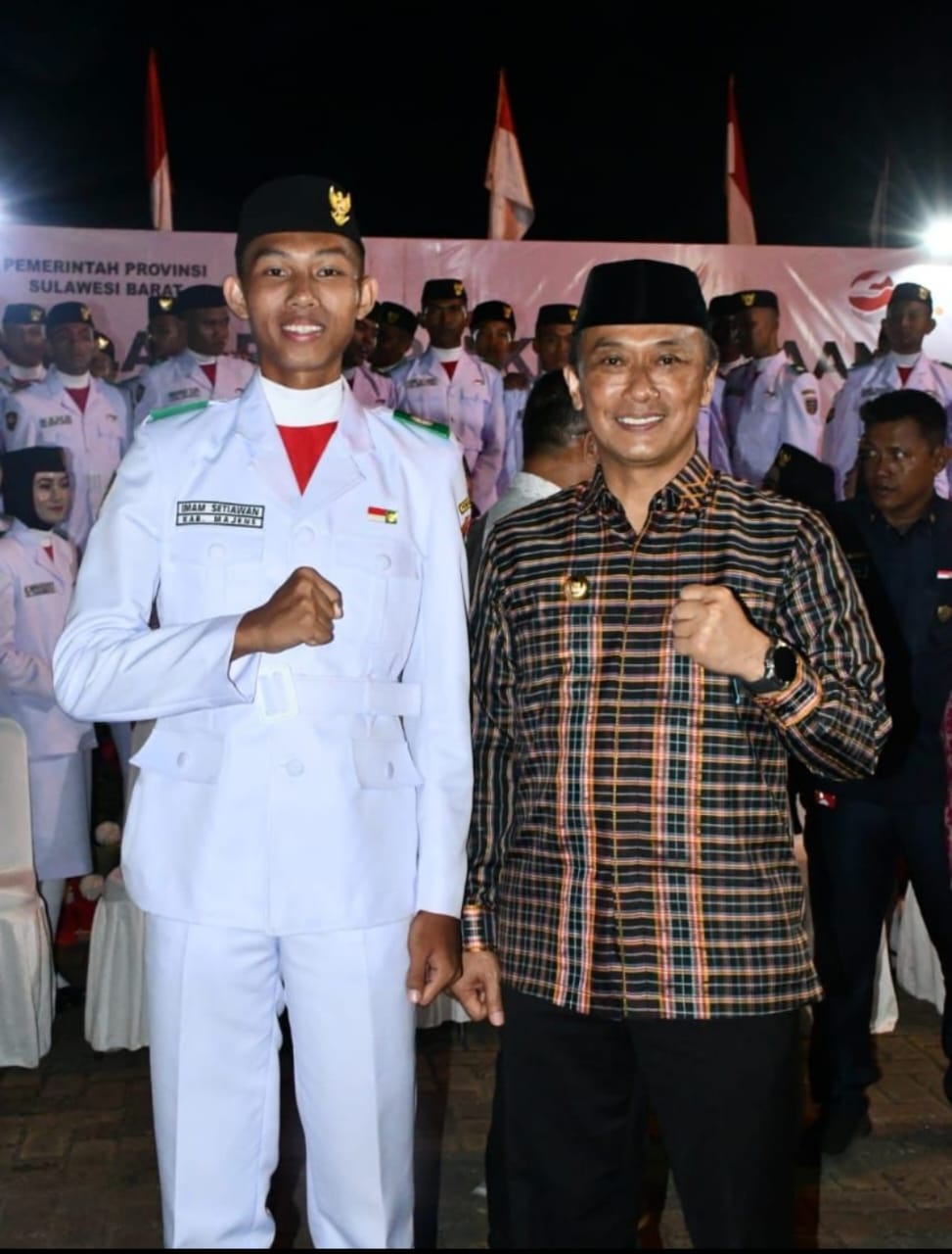 Itu dilakukan Pj Gubernur Sulbar sebagai bentuk apresiasinya kepada Imam yang dinilai sukses melaksanakan tugasnya dengan baik saat menjadi pasukan pengibar bendera pada upacara Hari Kemerdekaan 17 Agustus lalu.