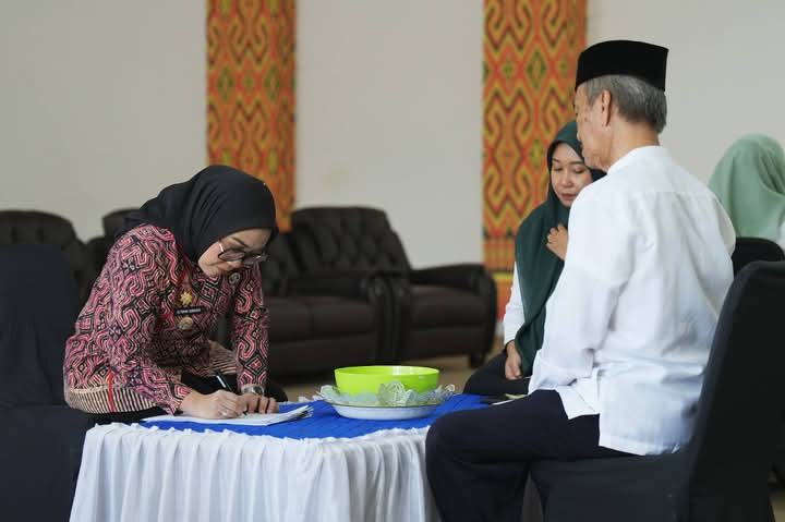 Sejumlah Kepala Perangkat Daerah dan Aparatur Sipil Negara bersama Bupati Mamuju, Dr. Hj. Sitti Sutinah Suhardi, melakukan pembayaran Zakat Fitrah lebih awal.