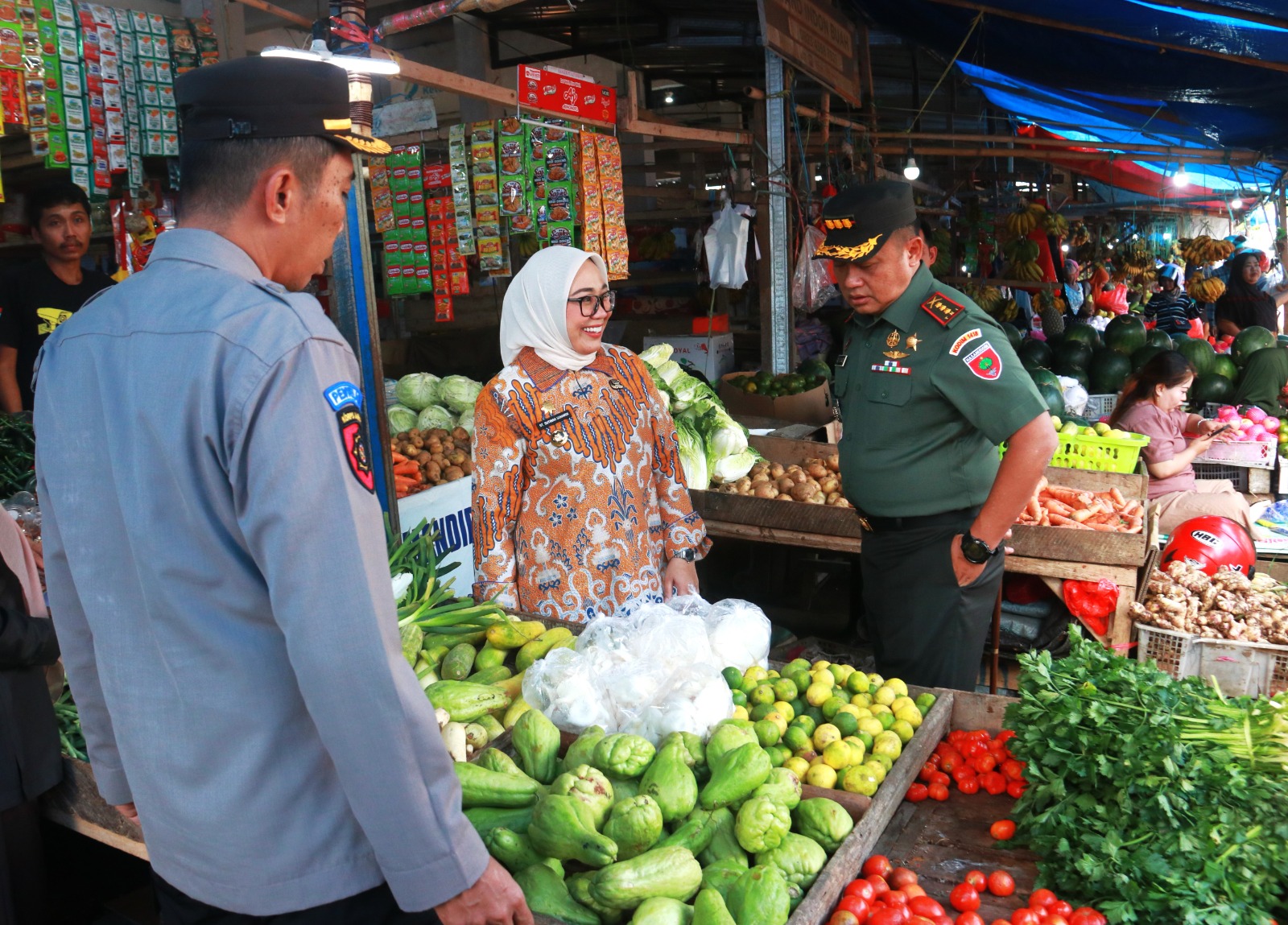 Sembari berkeliling di area pasar dan bercengkarama dengan warga, Sutinah Suhardi tidak jarang menanyakan langsung harga pangan maupun ketersediaannya kepada para pedagang.