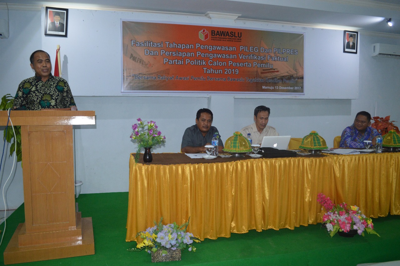 Mamuju, 8enam.com.-Dalam rangka mengawal Pemilu Legislatif (Pileg), Pemilu Presiden (Pilpres) Tahun 2019 dan verifikasi faktual Partai Politik calon peserta Pemilu Tahun 2019, Bawaslu Sulbar gelar kegiatan fasilitasi tahapan pengawasan Pileg, Pilpres dan persiapan pengawasan verifikasi faktual partai politik calon peserta Pemilu Tahun 2019.