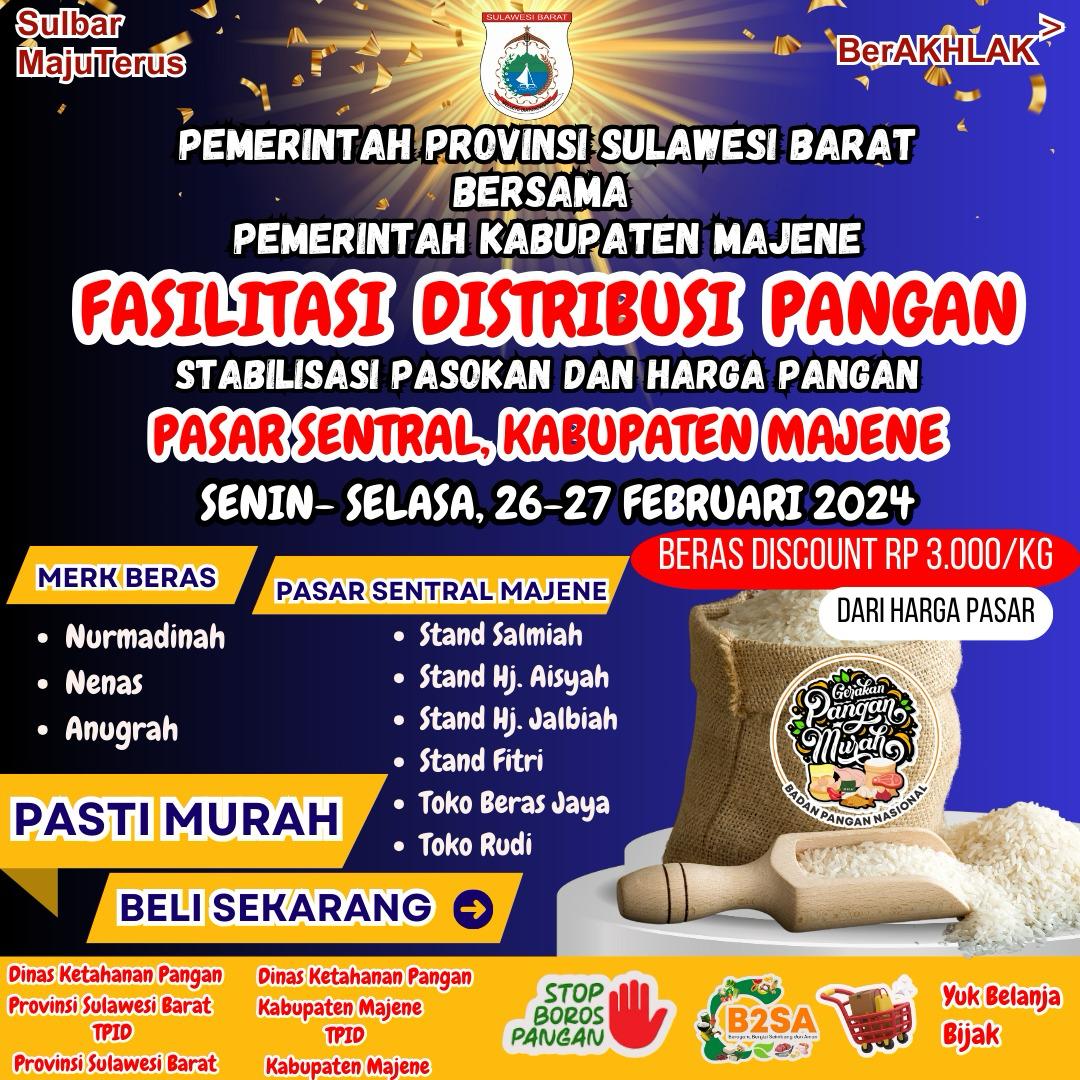 Pasar murah ini bekerjasama dengan mitra Pemprov yakni Bulog Mamuju, Bulog Polman dan Pemkab Majene.