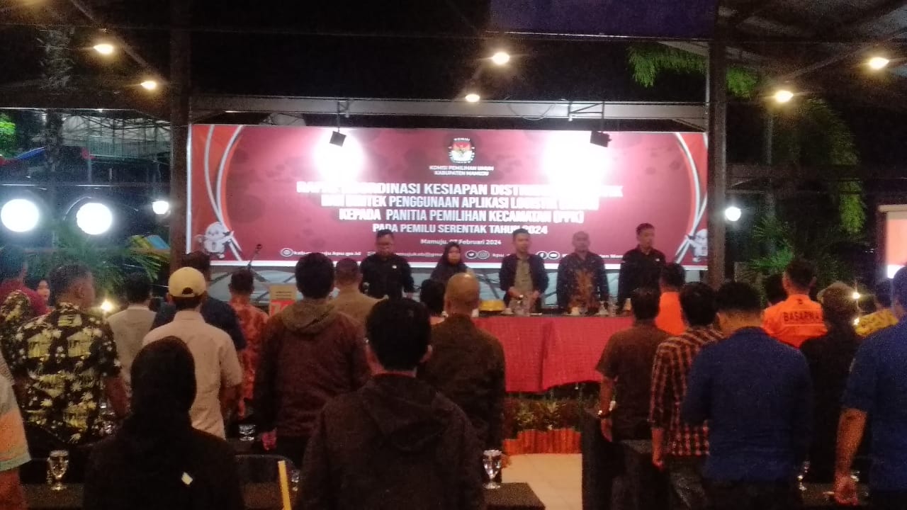 Kegiatan berlangsung di Waterpark Grand Maleo Hotel & Convention Mamuju pada, Rabu (7/2/2024) juga di hadiri seluruh PPK se-Kabupaten Mamuju, Polresta Mamuju, Dandim 1418 Mamuju, Kejari Mamuju, Bawaslu Mamuju, Kesbang Pol Mamuju, Basarnas Mamuju dan OKP serta Awak Media.