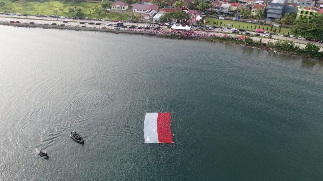 Pengibaran bendera di atas permukaan laut ini merupakan yang pertama di Indonesia.