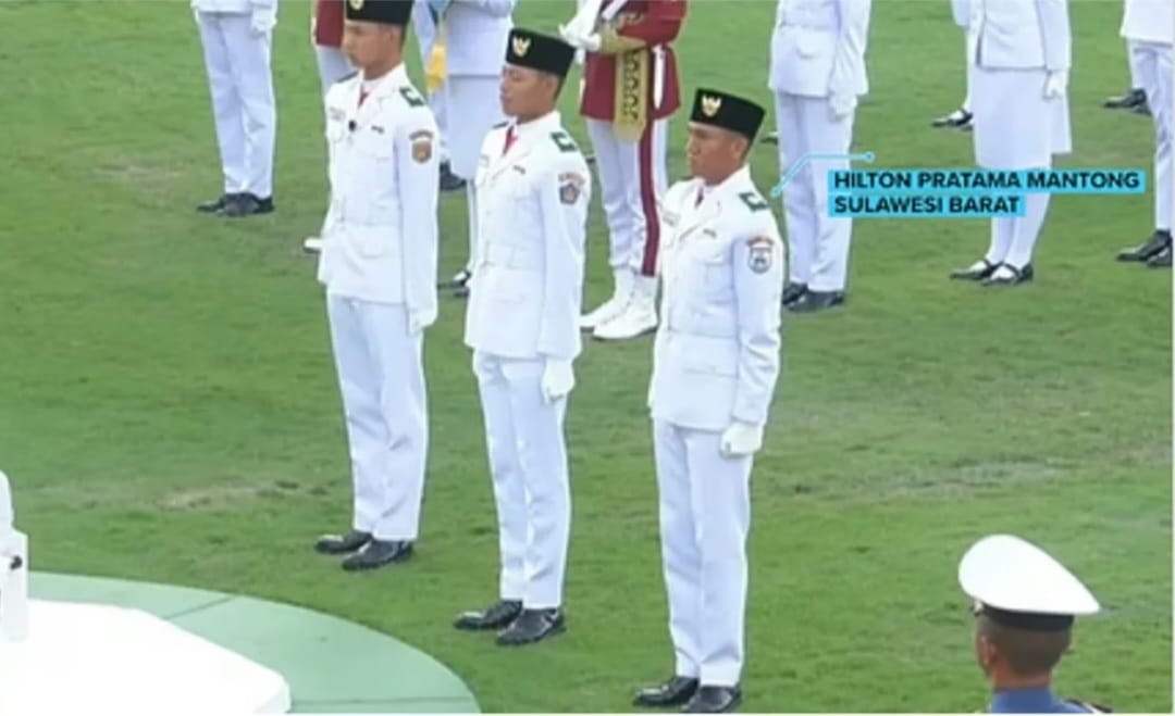 Hal itu terbukti dalam barisan ‘Indonesia Berdaulat’, seorang siswa asal SMA Negeri 1 Mamuju mencuri perhatian, Hilton Pratama Mantong. Menjadi Pasukan Inti Pembawa Bendera atau Pasukan 8. Barisan yang menjadi pusat perhatian karena bertugas membawa dan mengibarkan Sang Saka Merah Putih.