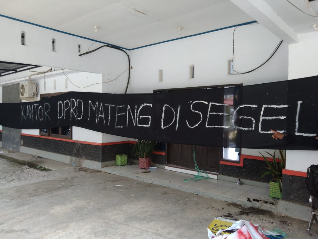 Massa aksi berhasil menduduki kantor DPRD Mateng dan membentangkan spanduk tepat didepan pintu masuk kantor DPRD Mateng.