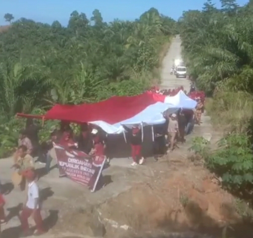 Neni salah satu inisiator kegiatan tersebut menuturkan, bendara merah putih yang dibentangkan lalu dibawa keliling kampung itu sepanjang 22 x 5 meter.