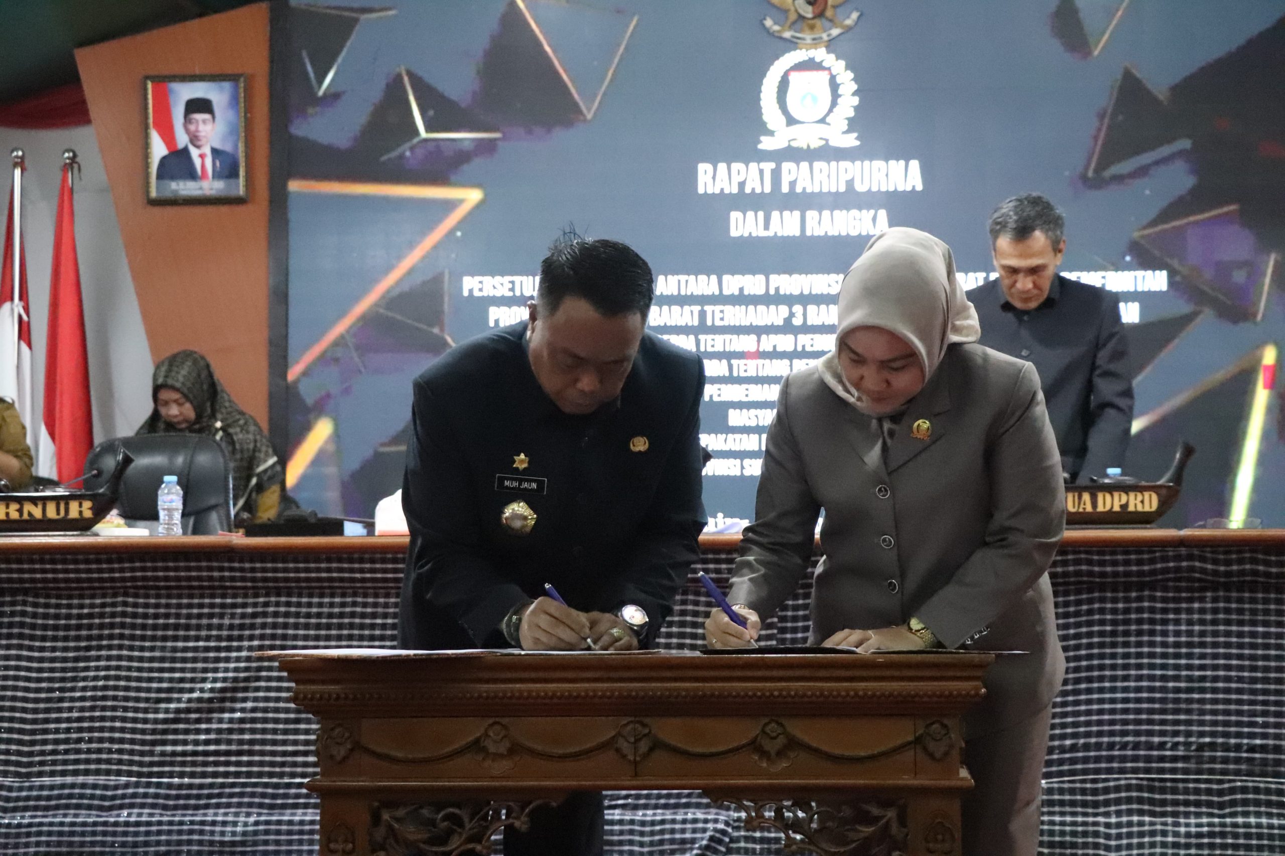 Pada rapat paripurna tersebut dihadiri Asisten Pemprov Sulbar Muhammad Jaun, dipimpin Ketua DPRD Sulbar Dr Sitti Suraidah Suhardi, dan Wakil Ketua Usman Suhuriah.