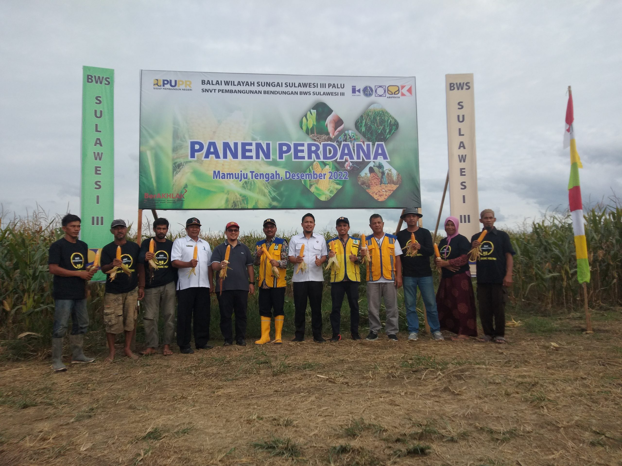 Hadir pada panen perdana jagung tersebut, Kepala Balai BWS Sulawesi III Palu, M. Taufik, DR Arsal Aras, Kapolres Mateng yang diwakili Kasat Intel, Sekertaris Dinas Pertanian Mateng, Kepala Satker Pembangunan bendungan Budong-budong, kontraktor dan konsultan serta petani Dusun Manurung.