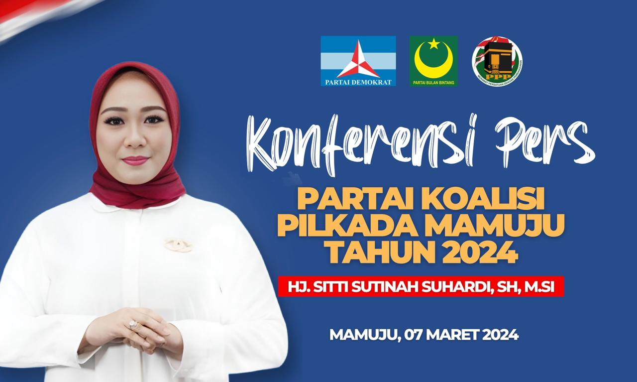 Konferensi Pers partai koalisi Sutinah Suhardi direncanakan akan digelar hari Kamis, 7 Maret 2024 di cafe 24 jalan Kurungan Bassi depan RSUD Mamuju. (*)