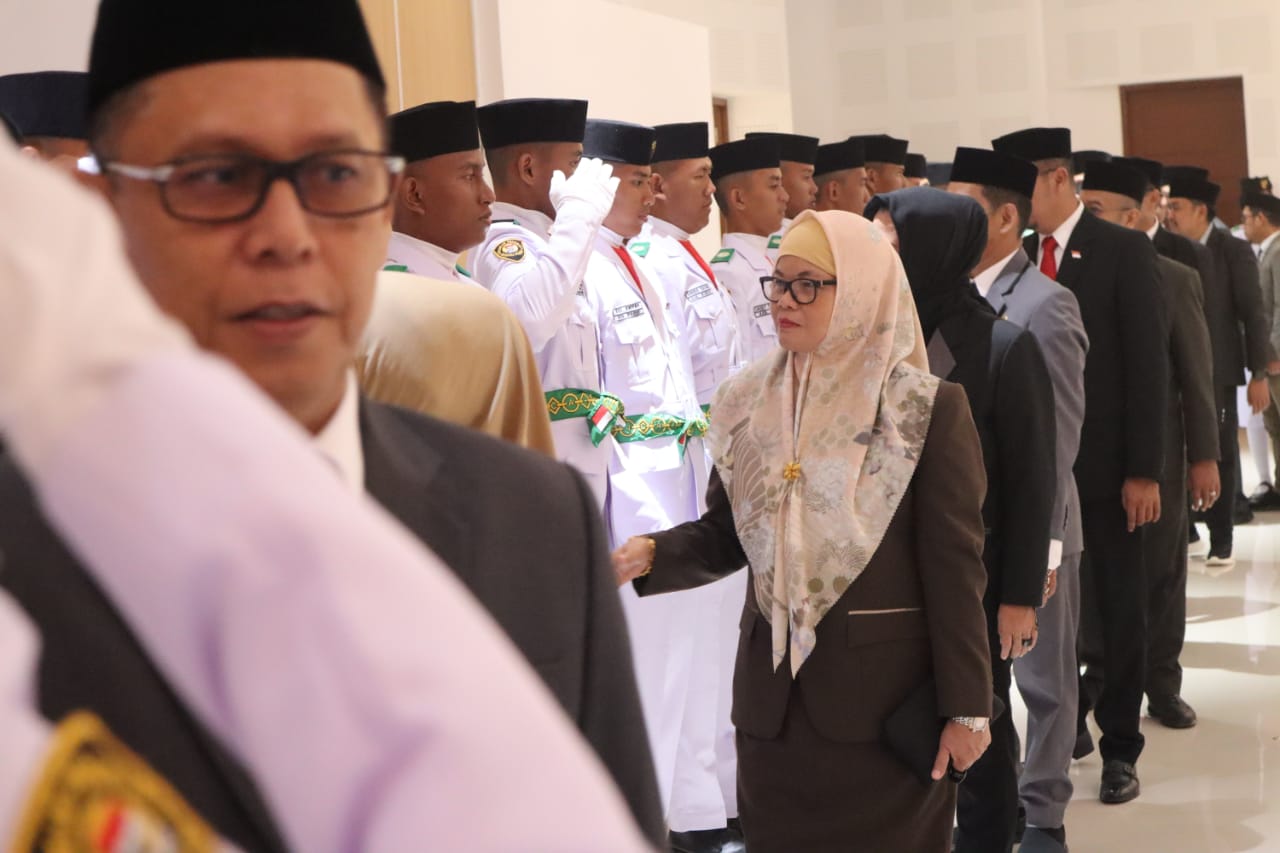Mamuju, 8enam.com.-Gubernur Sulbar, Suhardi Duka, memimpin Upacara Pengukuhan Pasukan Pengibar Bendera Pusaka (Paskibraka) Tingkat Provinsi Sulbar Tahun 2025 yang digelar di Ballroom Andi Depu Kantor Gubernur Sulbar pada Jumat malam 15 Agustus 2025.