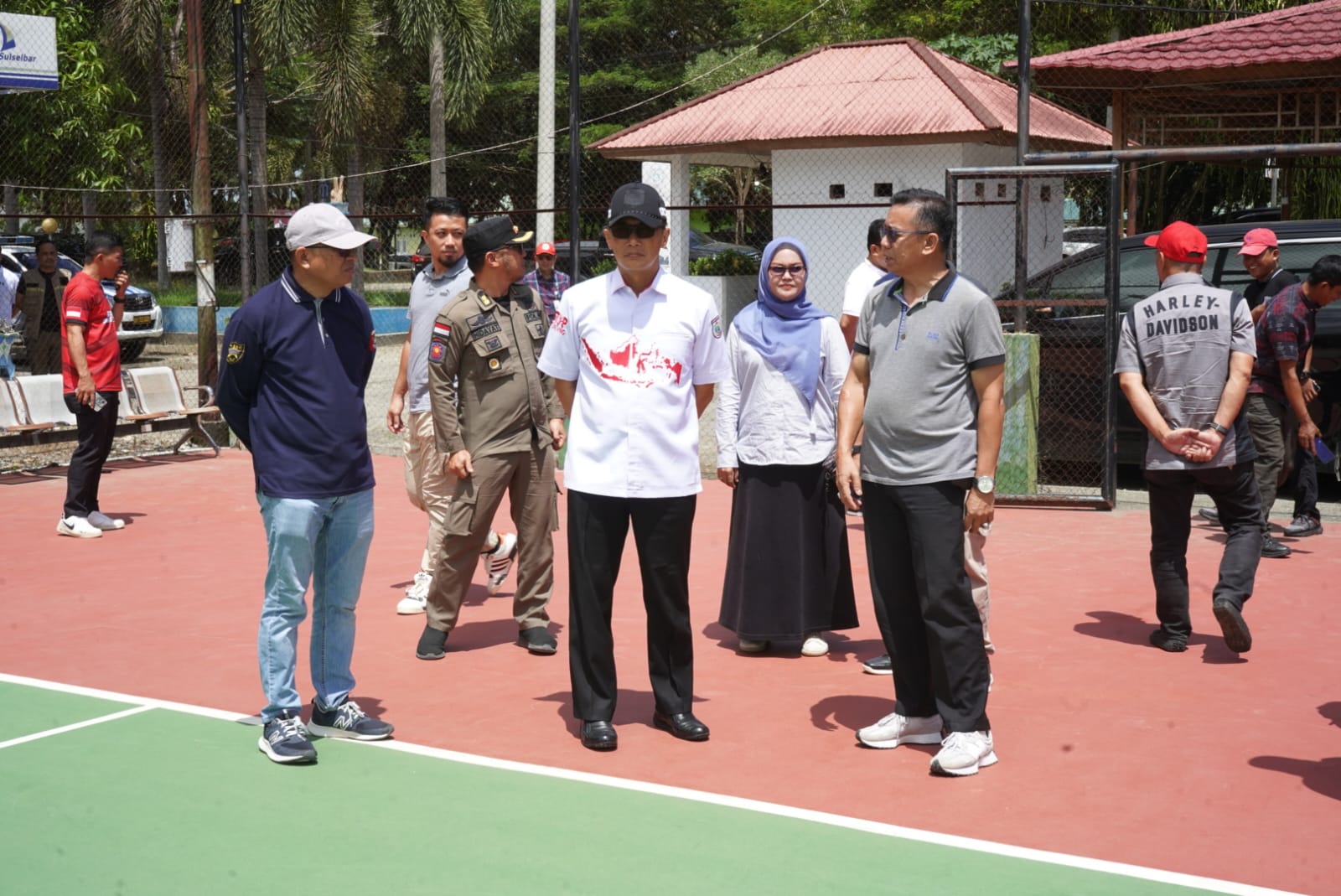 Mateng, 8enam.com.-Pj Gubernur Sulbar Prof. Zudan Arif Fakrulloh meninjau venue cabang olahraga untuk Pekan Olahraga Pelajar Daerah (Popda) ke IX Tahun 2024 Tingkat Provinsi Sulbar di Kabupaten Mamuju Tengah, Sabtu (11/5/2024).