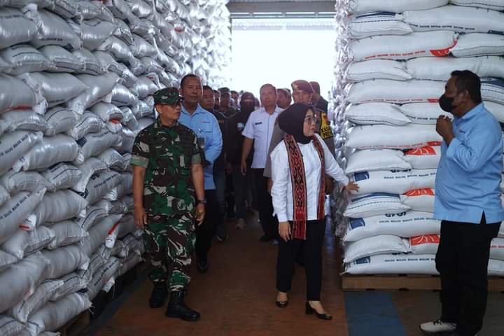 Mamuju, 8enam.com.-Untuk memastikan pasokan beras, terigu dan minyak goreng pada Badan Urusan Logistik (Bulog), Jelang memasuki Bulan Suci Ramadhan, Bupati Mamuju, Sitti Sutinah Suhardi, bersama sejumlah unsur Forkopimda melakukan pemantauan langsung ke gudang Bulog di jl. Gatot Subroto Mamuju, Rabu (28/2/2024).