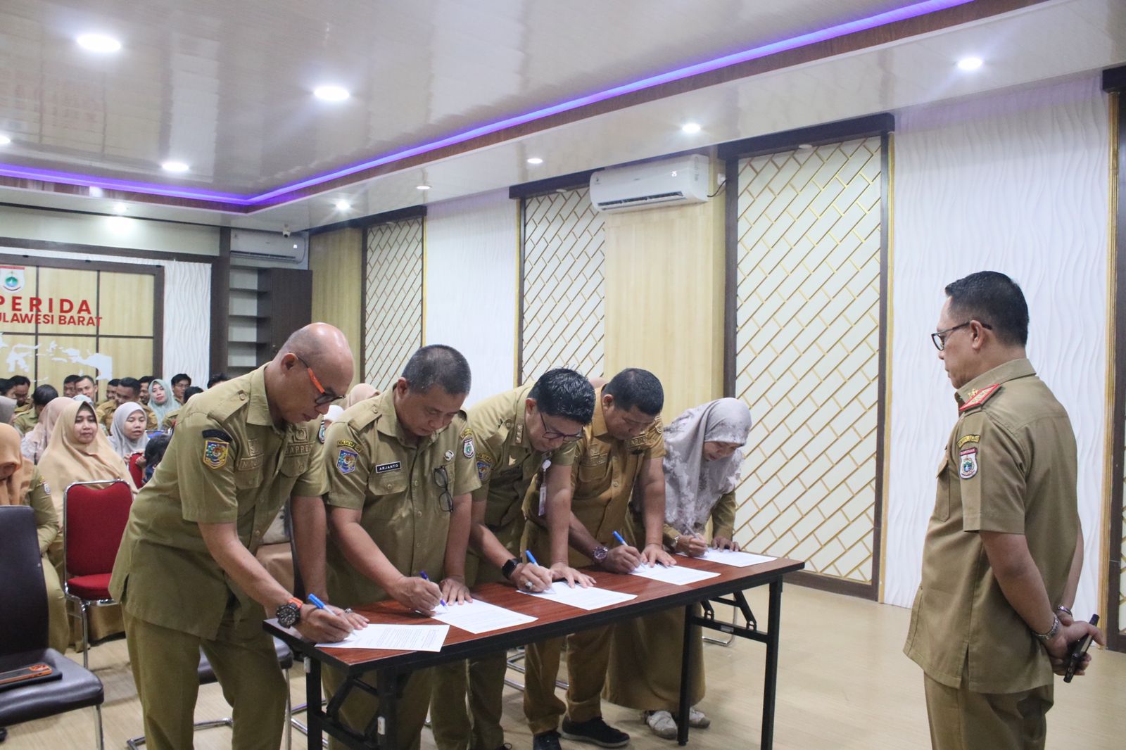 Olehnyaz Pemprov Sulbar bersama Pemkab se-Sulbar melakukan ikrar netralitas ASN sebagai komitmen pemerintah menyuksesian pemilu 2024. Penandatanganan dilakukan dalam apel virtual yang dilaksanakan Senin (27/11/2023).