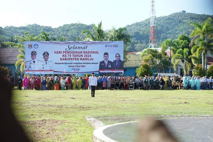 Mamuju, 8enam.com.-Hari Pendidikan Nasional tahun 2024, Pemerintah Kabupaten Mamuju bersama stakeholders pendidikan, mulai dari guru sampai siswa sekolah dasar dan menengah, melaksanakan upacara bendera di Lapangan Ahmad Kirang Mamuju.