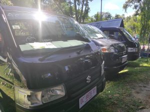 Penyerahan tiga mobil berwarna hitam masing-masing dua mobil pick-up untuk kelompok masyarakat Sipatuo, dan kelompok Transmart Synergy, sedangkan mobil jenis APV diberikan kepada kelompok masyarakat Madani.
