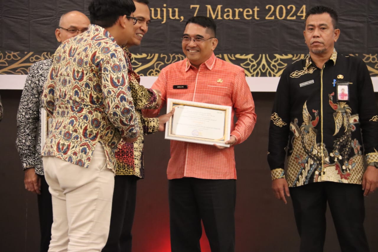 Asisten III Setda Sulbar, Amujib mewakili Pj Gubernur Sulbar Prof Zudan Arif Fakrulloh menerima penghargaan tersebut di Hotel Maleo, Kamis 7 Maret 2024.