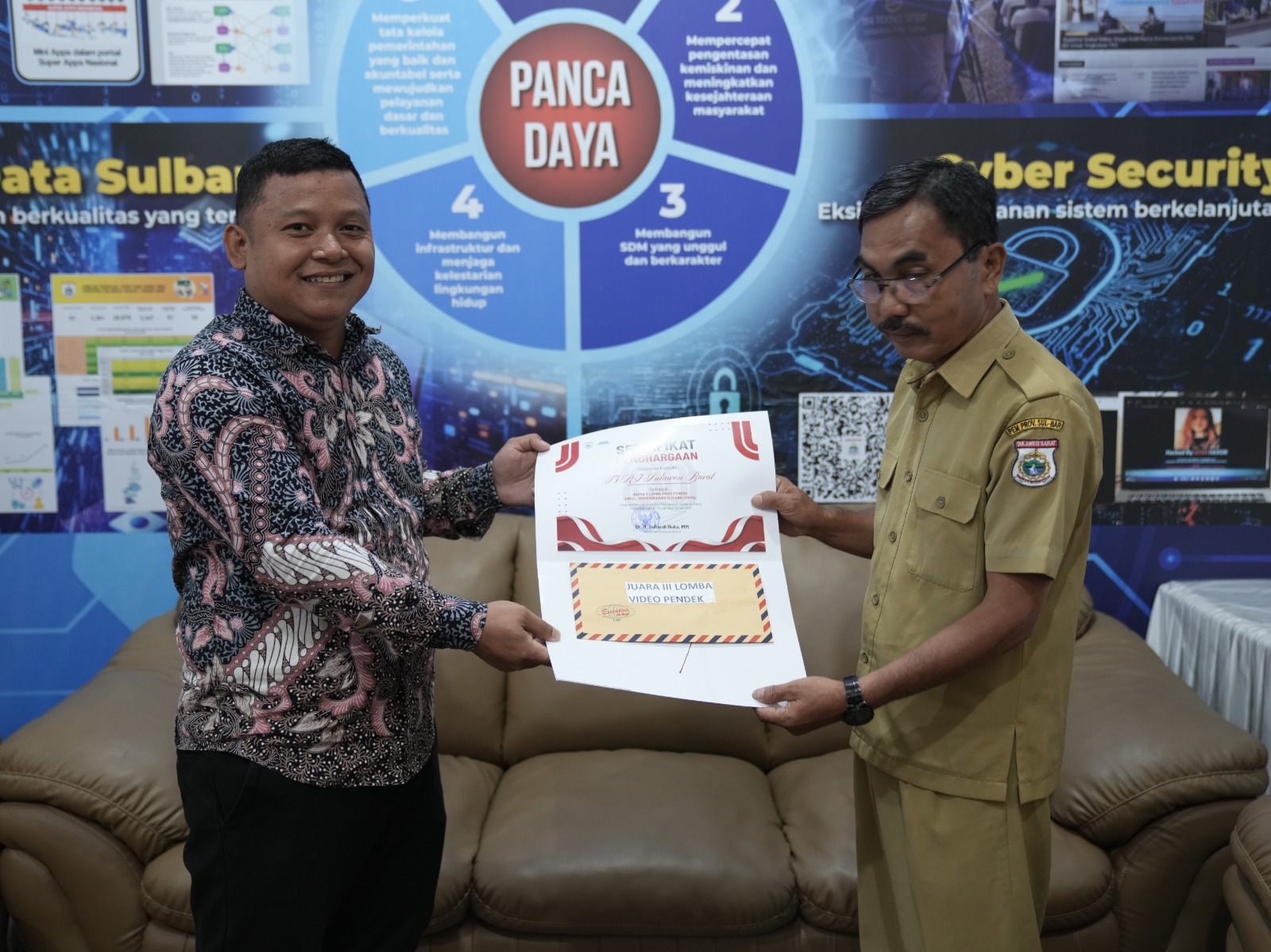 Prosesi penyerahan penghargaan berlangsung, Selasa 19 Agustus 2025, di Kantor Dinas Komunikasi, Informatika, Statistik dan Persandian (Kominfo SP) Sulbar. Pemberian penghargaan ini sebagai bentuk motivasi dan apresiasi dari Pemprov Sulbar kepada para pemenang lomba.